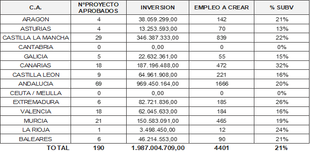 - Los proyectos subvencionados supondrán una inversión acumulada de “solo” 1.987 millones de euros, cuando en el 2023 la inversión total subvencionada fue de 2.067 millones de euros.